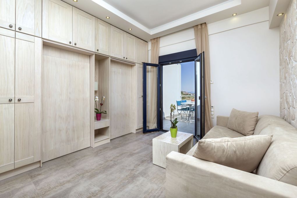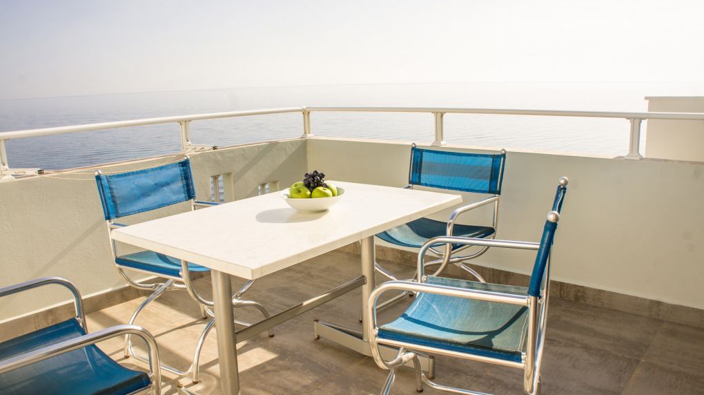 Located on the second floor, this bright and individually decorated studio consists of a bedroom and a living room, and enjoys panoramic views of the Aegean Sea from its 12 m2 balcony. It includes a modern, ful...