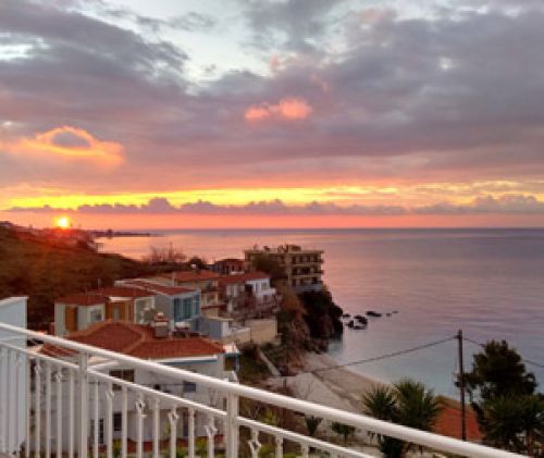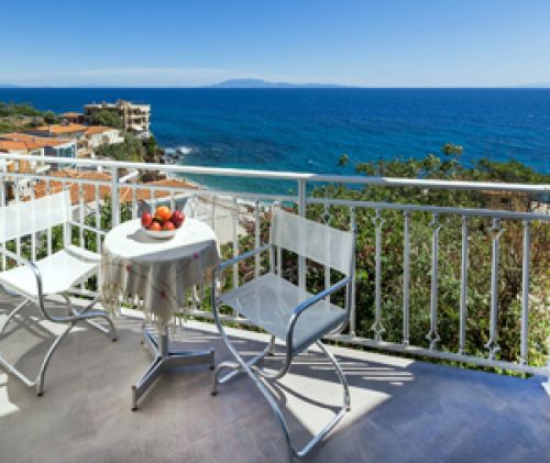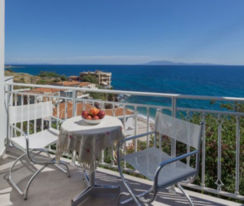 and balcony with panoramic view of the sea and especially to the beach of Agios Isidoros.