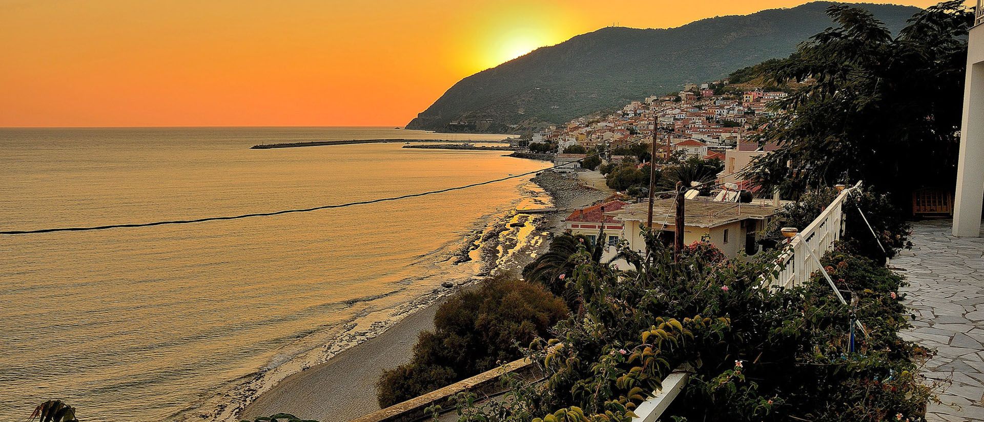The beach of Agios Isidoros is at 800 metres, while Mytilene, the island’s